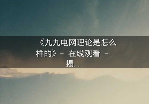 随着剧情推进,李明在朋友小芳的帮助下,逐步破解理论的深层含义。他们发现,“九九电网理论”不仅是技术突破,更映射出社会中的权力电网:每个人都在无形中被能源网络牵制,而理论的应用需要道德约束。最终,李明选择公开理论,但附加了严格的监管条款,引发社会热议与改革。这一结局升华主题,警示我们科技发展必须与人文关怀并行,否则任何理论都可能沦为破坏工具。